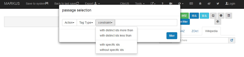 Amb aquesta plataforma es pot pujar un arxiu en xinès clàssic (i potser en el futur en altres idiomes) i etiquetar noms personals, noms de lloc i referències temporals. També es pot carregar una llista de termes clau per a l’etiquetatge automatitzat i llegir un document mentre es comproven, al mateix temps, una sèrie de treballs de referència, o també comparar passatges en què apareixen els mateixos noms o paraules clau.