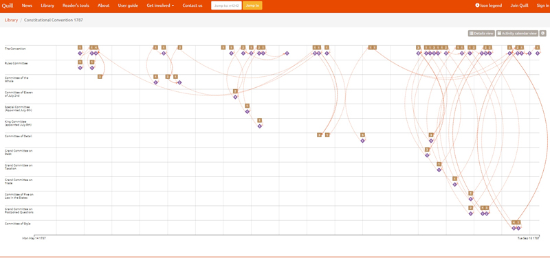 Utilitzant els registres dels processos que han creat constitucions, tractats o legislacions, ofereix una recreació dels contextos en què es van prendre decisions. Les visualitzacions permeten comprendre i explorar el procés de negociació i comentar punts d’interès específics.